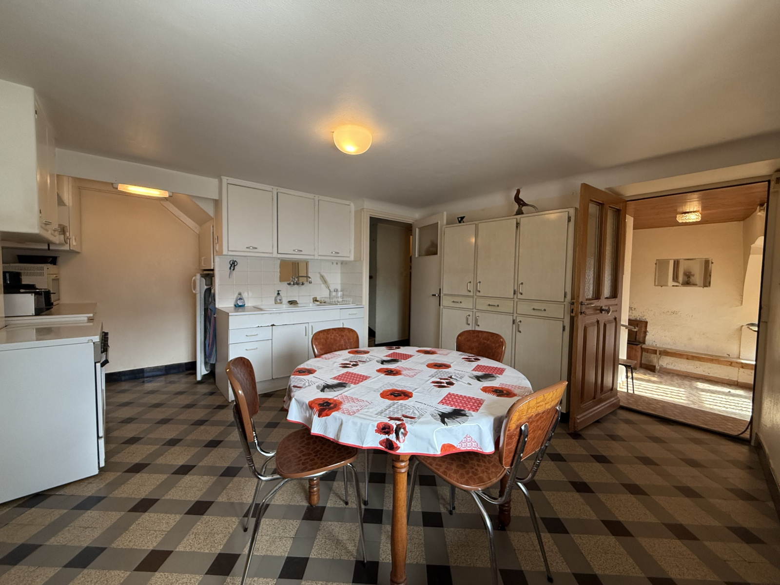 Au rez de chaussée : un hall d'entrée avec rangement, une cuisine séparée, un double salon-séjour, un WC séparé et une salle d'eau.