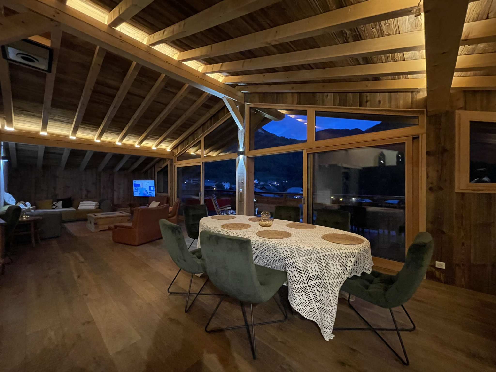 L'appartement duplex se compose d'une grande cuisine ouverte sur le salon séjour avec une terrasse exposée plein sud offrant une vue complètement dégagée sur les montagnes et la vallée de Bozel.