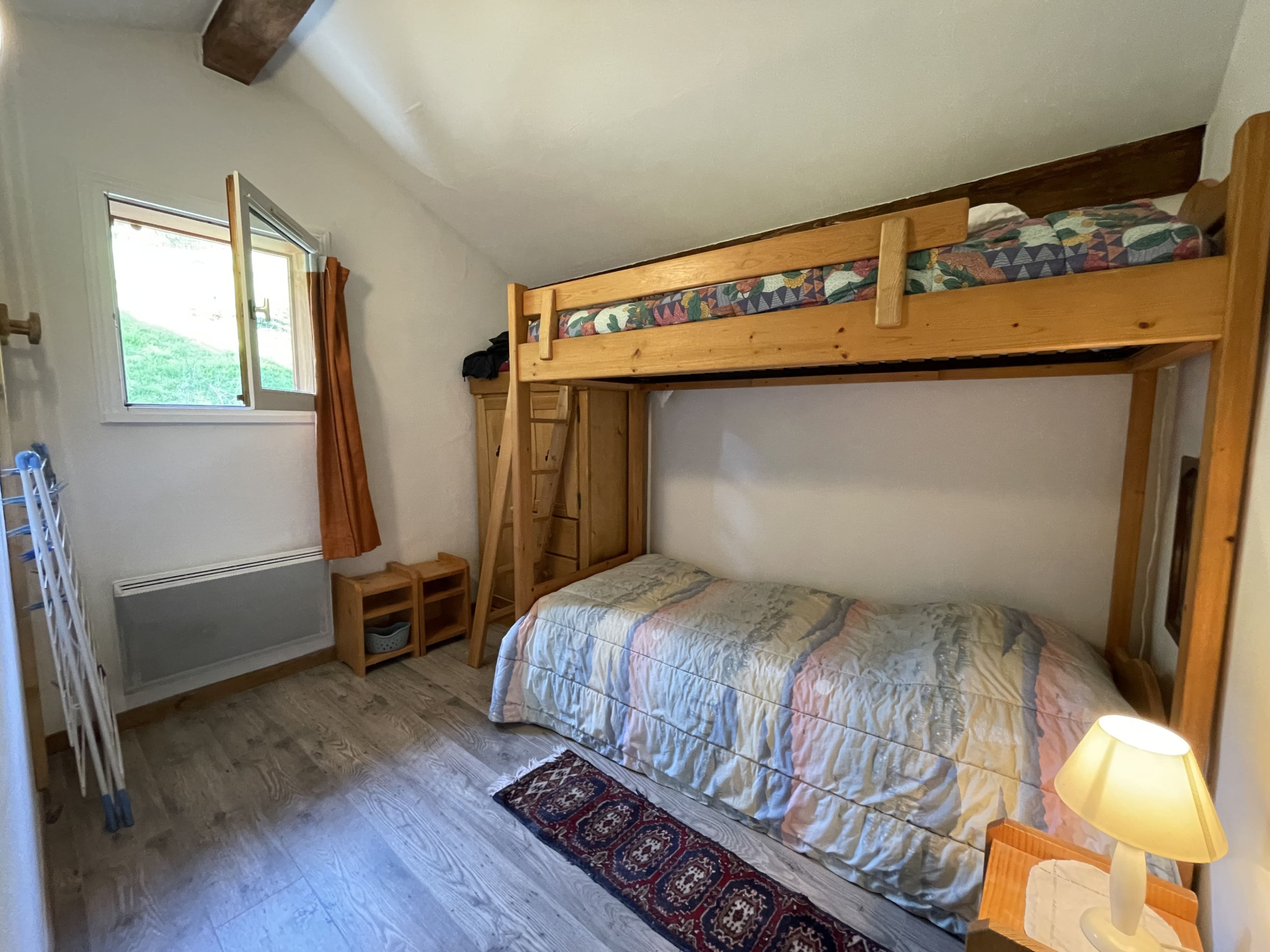 A l'étage deux chambres avec rangements et une salle d'eau avec WC.