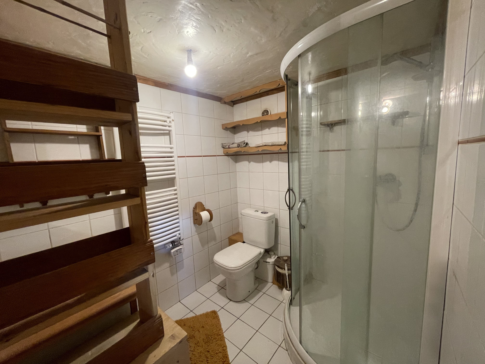 A l'étage : trois chambres avec rangements, un WC séparé, une salle d’eau et une baignoire.