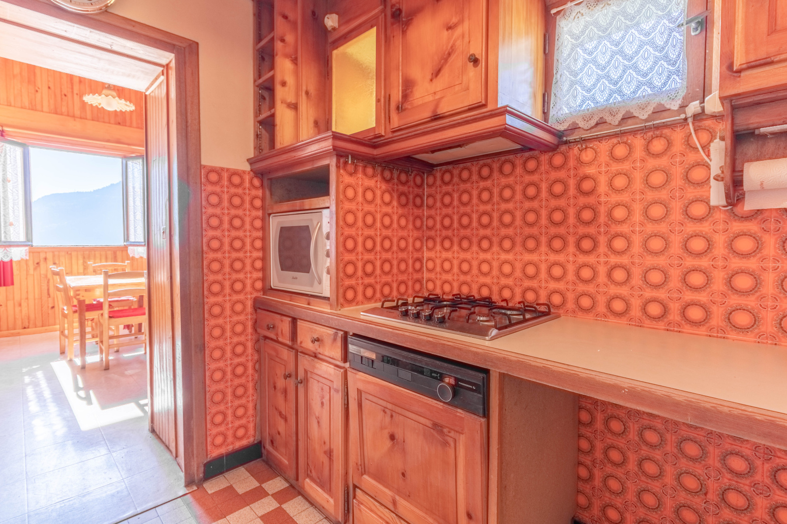 Un appartement trois pièces de 60 m² comprenant une entrée accueillante, une cuisine séparée, et un salon lumineux donnant sur un balcon. Le balcon offre une vue imprenable sur les montagnes environnantes, permettant de profiter du paysage alpin tout au long de l'année. Les deux chambres sont spacieuses et bien agencées, offrant un confort optimal. La salle de bains et les toilettes séparées ajoutent à la commodité de ce logement.