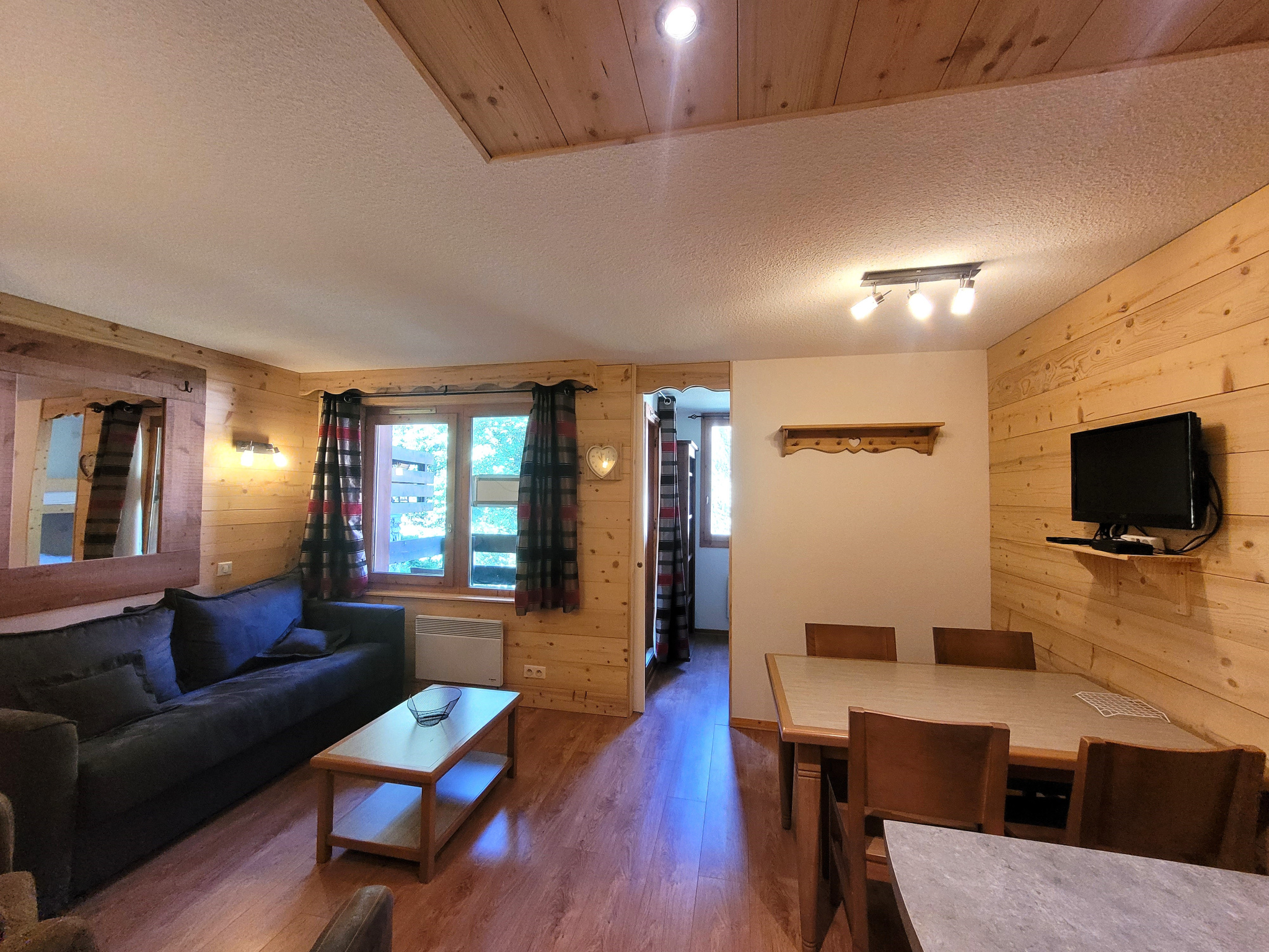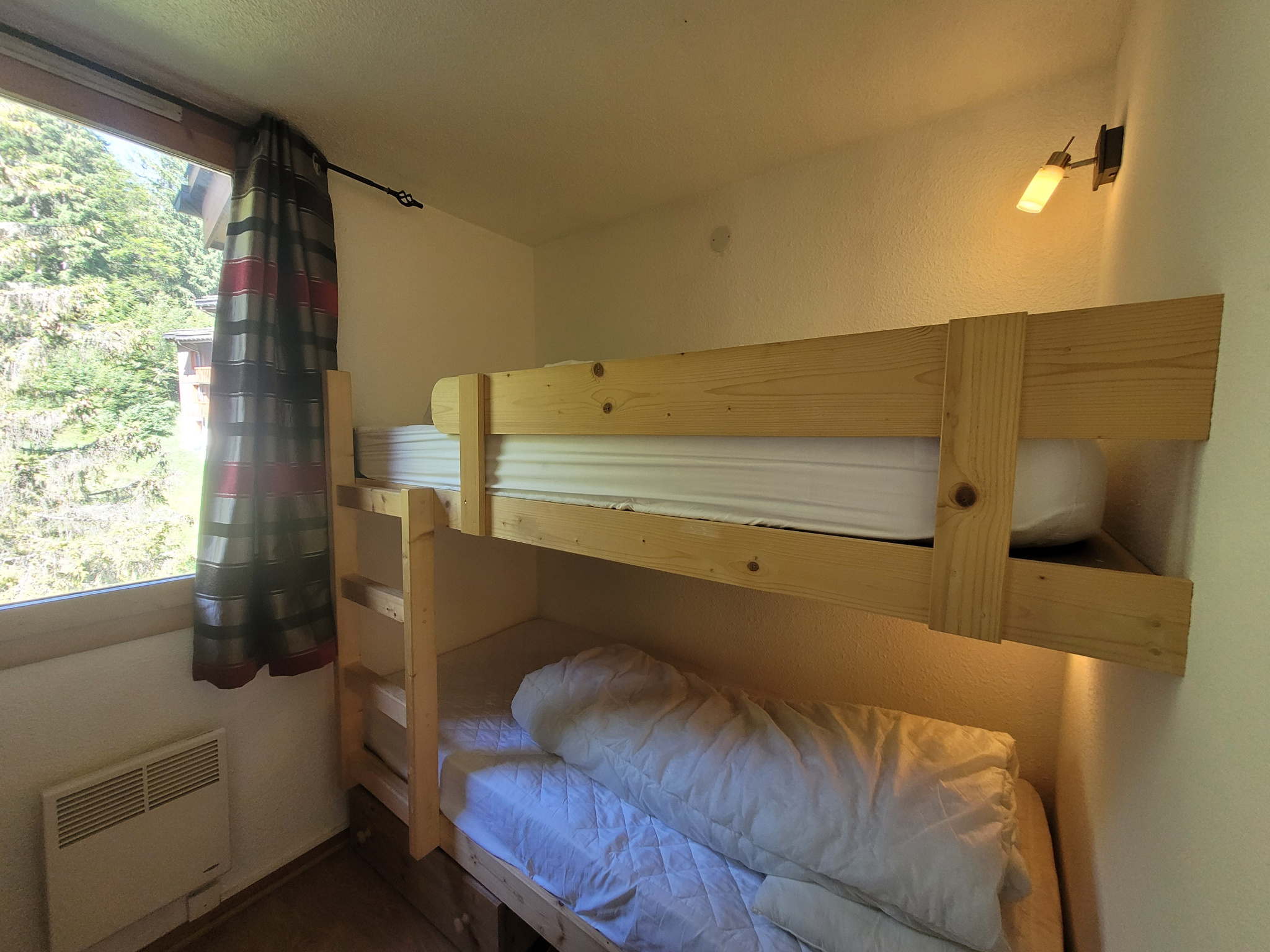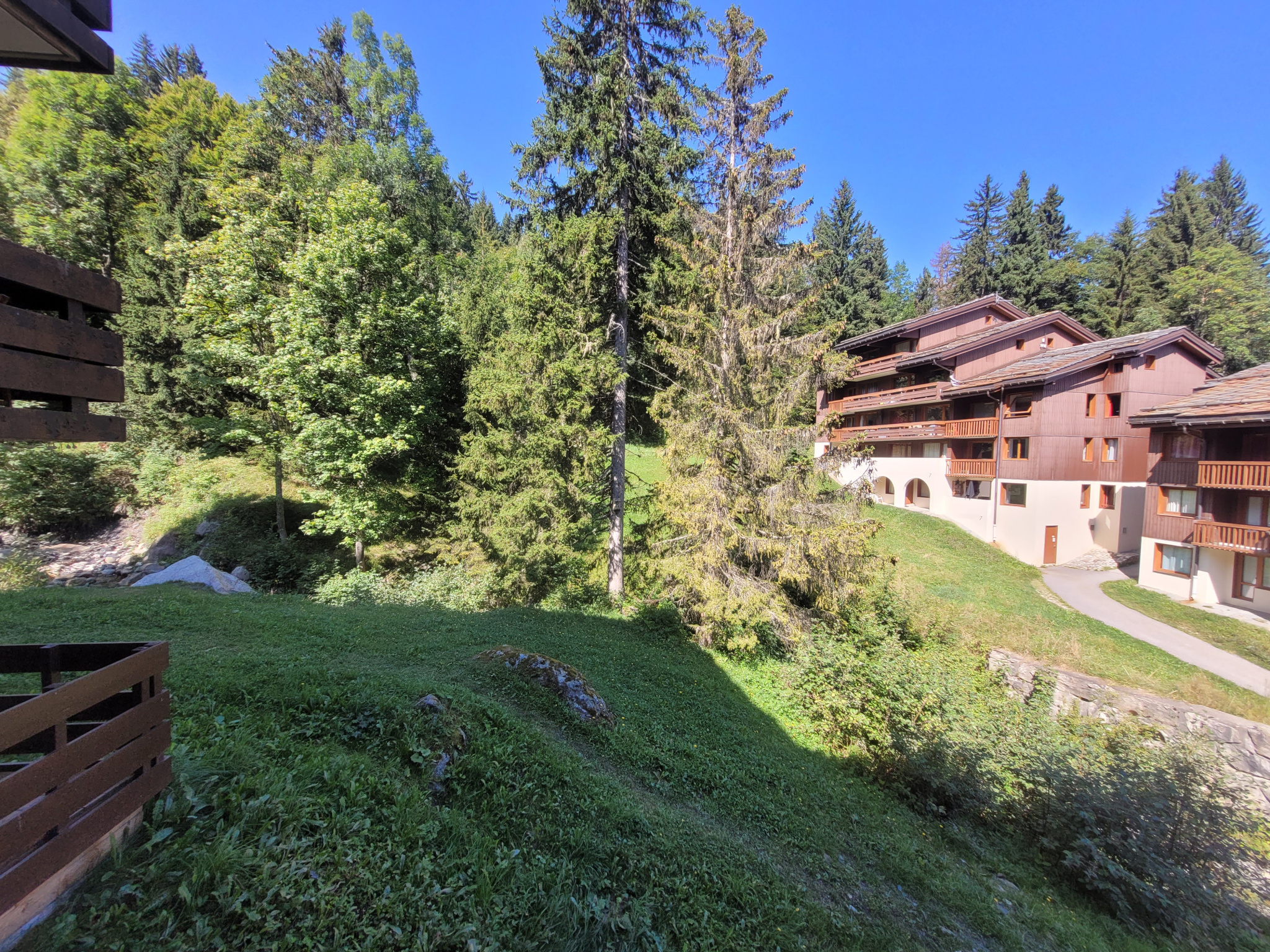 Vous apprécierez également le balcon offrant une belle vue dégagée sur la forêt et le ruisseau. Ce logement présente de nombreux avantages, notamment sa situation exceptionnelle au pied des pistes, parfait pour les amateurs de ski.