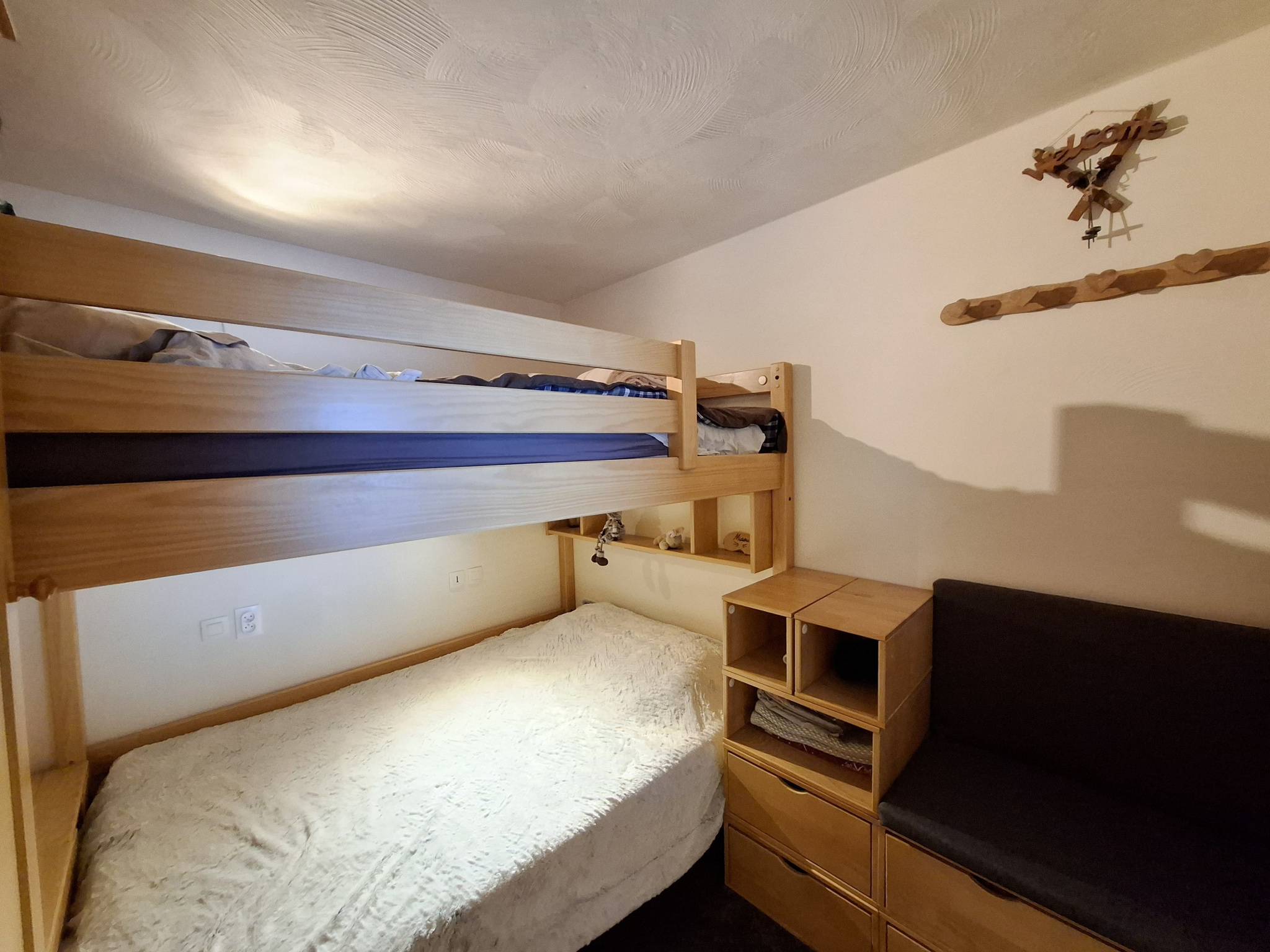 Appartement vendu avec un casier à skis. À seulement quelques pas du centre de la station, cet appartement bénéficie d’un emplacement privilégié avec un retour ski aux pieds.