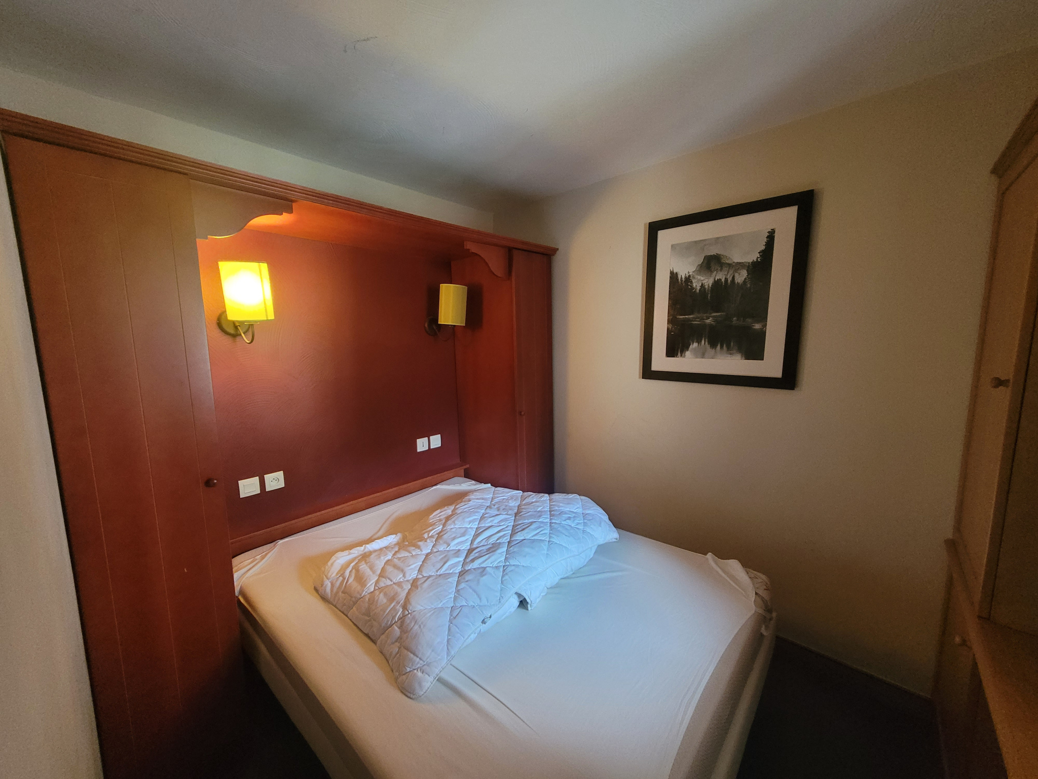 La première chambre, spacieuse et agréable, est équipée d'un lit double et de rangements. La deuxième chambre est un espace montagne astucieusement aménagé, avec des lits superposés, parfait pour accueillir des enfants ou des amis.