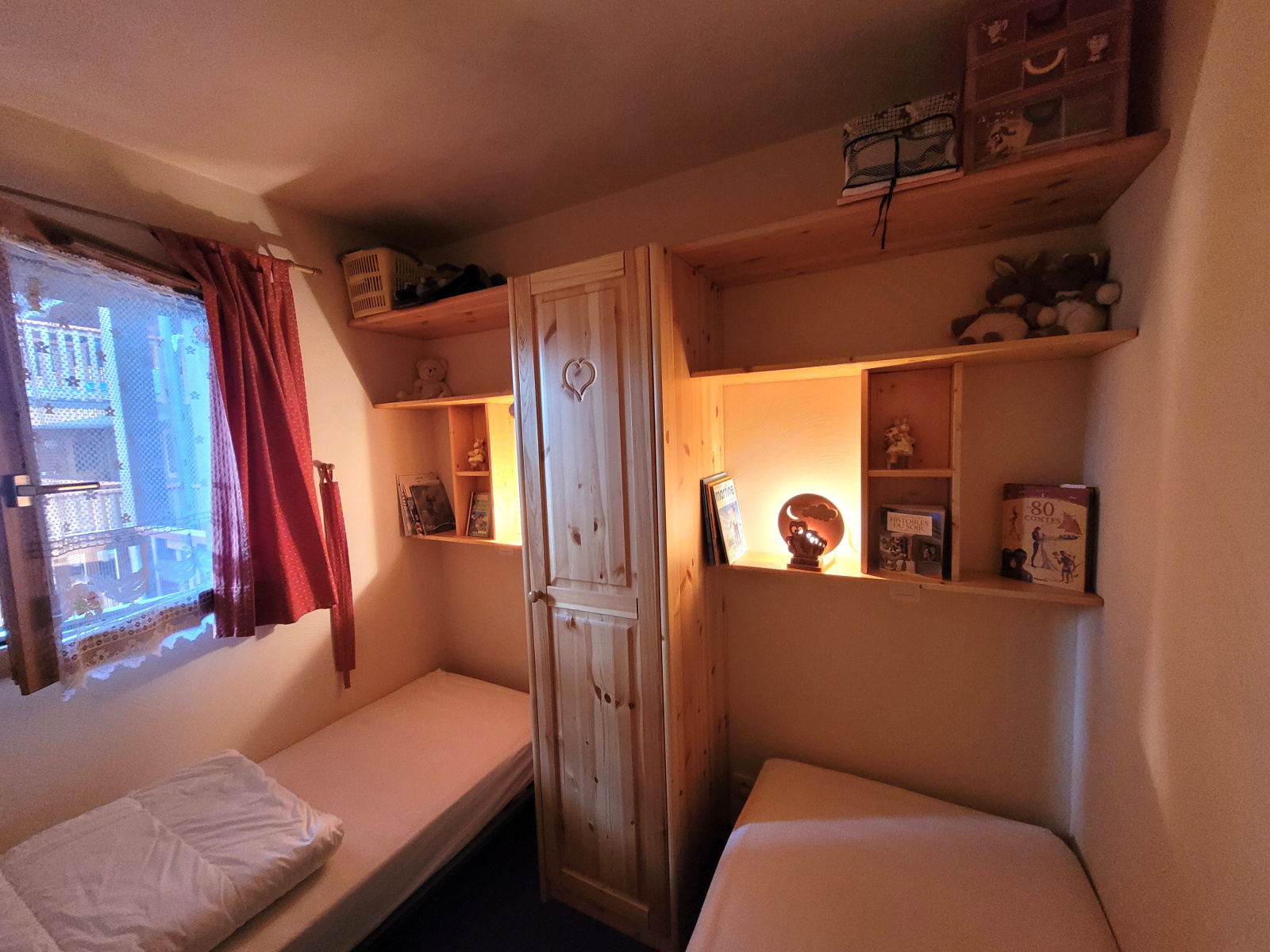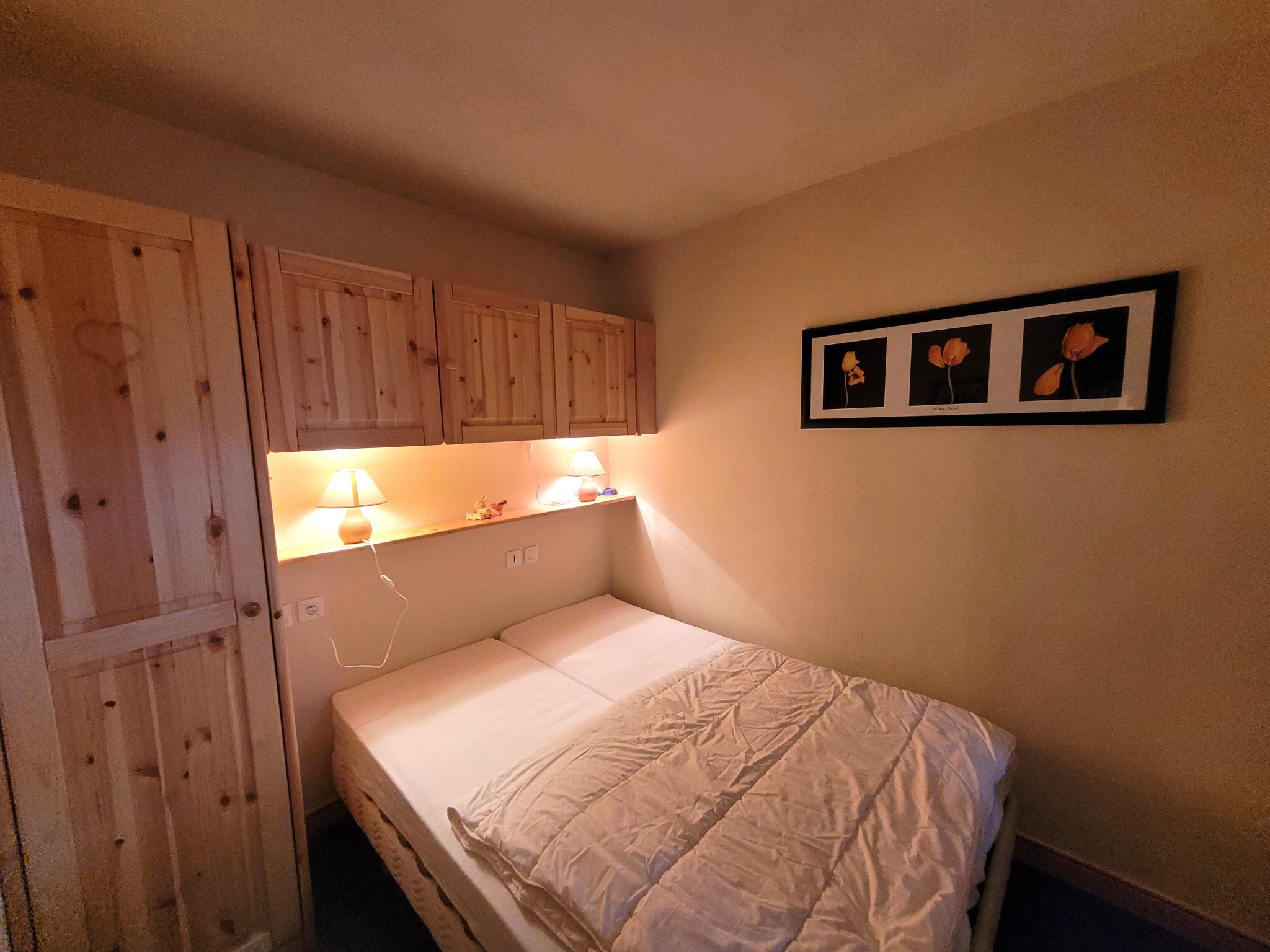 La première chambre, spacieuse et agréable, est équipée d'un lit double et de rangements. La deuxième chambre est une chambre astucieusement aménagée, avec deux lits simples, parfaite pour accueillir des enfants ou des amis.