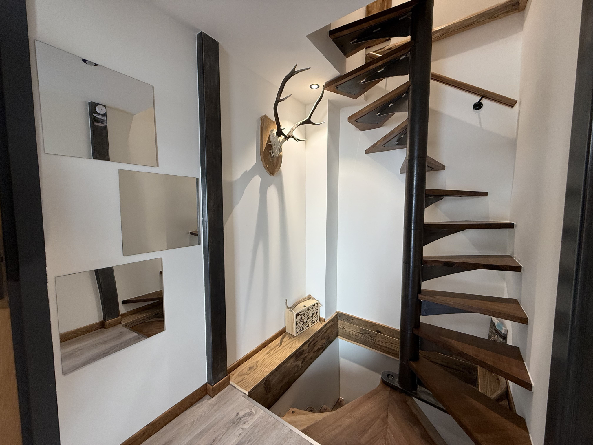 Au dernier étage : Deux grandes chambres avec rangements, un bureau et un WC séparé.