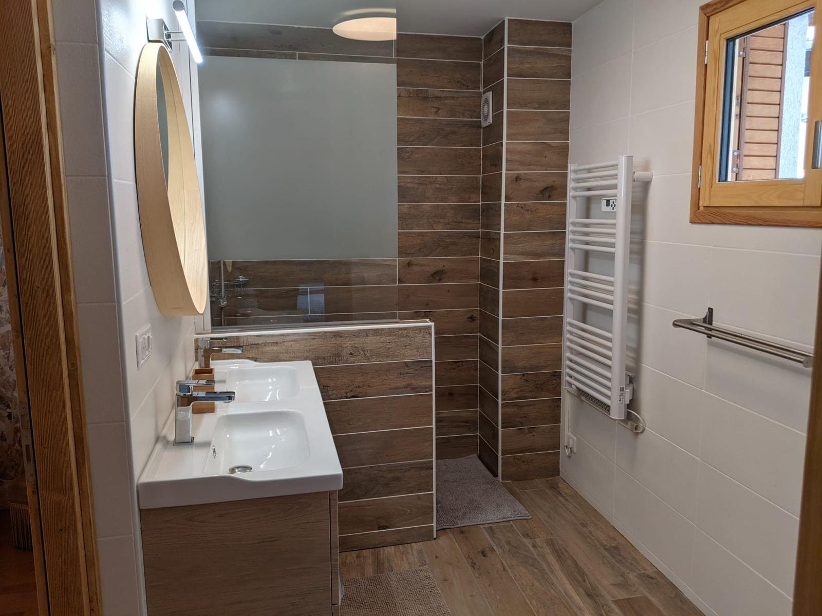 A l'étage : Deux chambres avec rangements, une salle d'eau et un WC