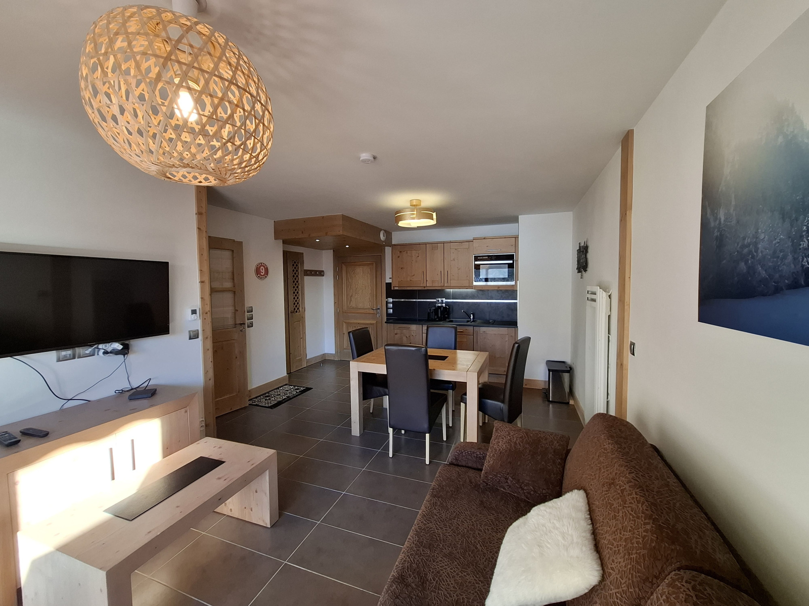À deux pas du centre et des commodités, cet appartement lumineux, exposé plein Sud, offre une vue imprenable et dégagée sur la vallée. Il se compose d’une pièce de vie fonctionnelle avec une cuisine ouverte sur le salon-séjour, donnant accès à un balcon ensoleillé. Une chambre avec rangements intégrés, idéale pour vos séjours en montagne. Une salle d’eau moderne avec un WC.