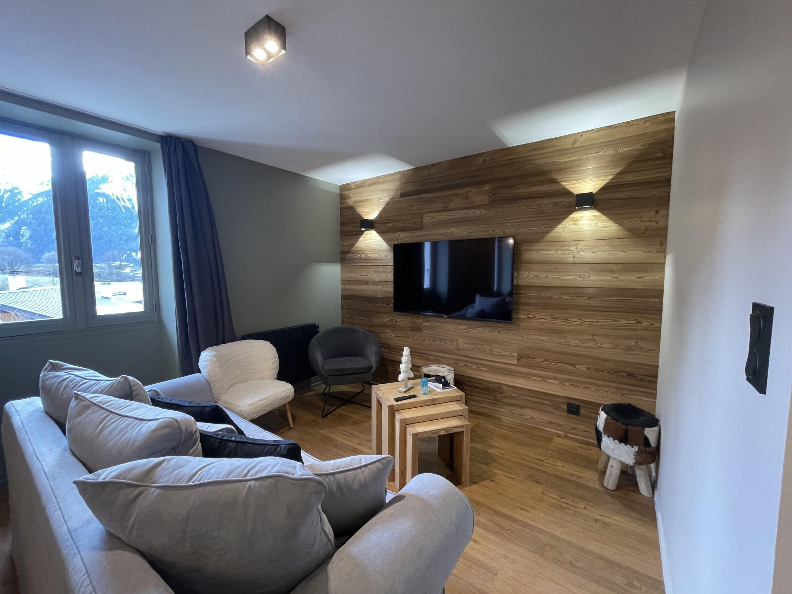 L'appartement très lumineux est exposé plein Sud, vous offre une vue complètement dégagée sur la vallée.