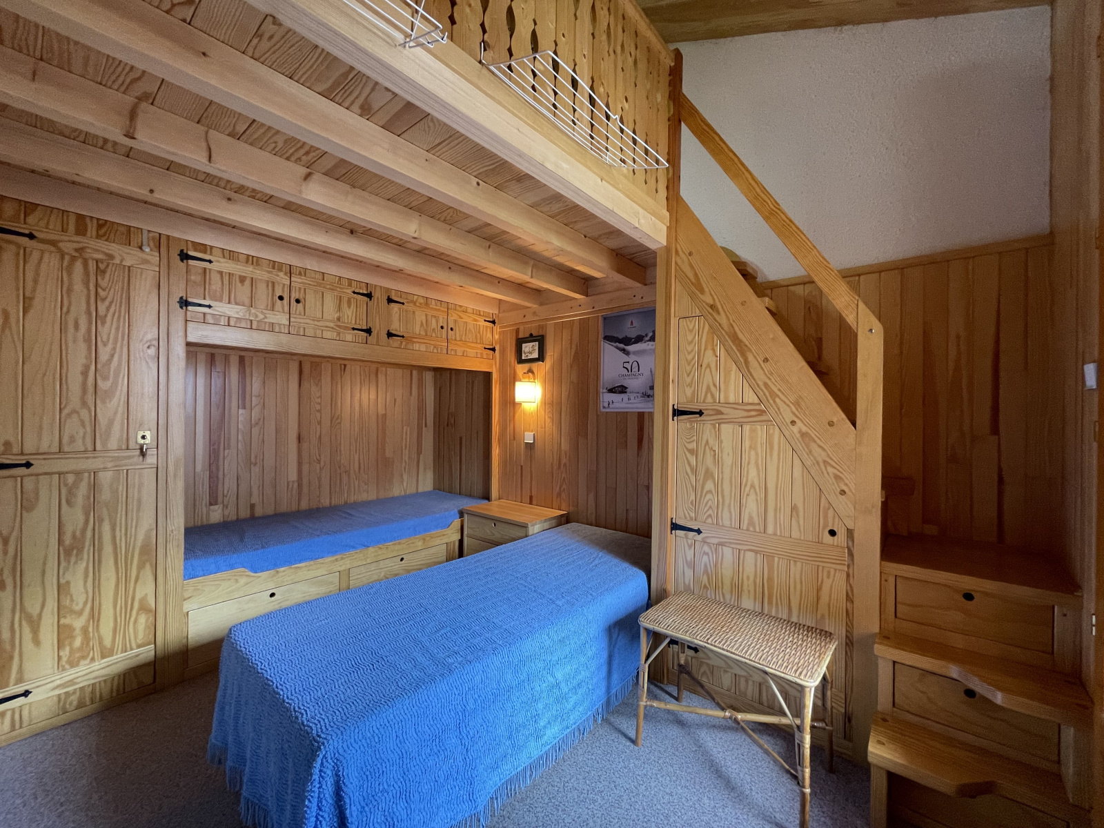 Un hall d'entrée, un WC séparé, une chambre avec rangement, une salle de bain, une chambre avec rangement avec son balcon privatif et dispose d'une mezzanine avec un coin nuit.
