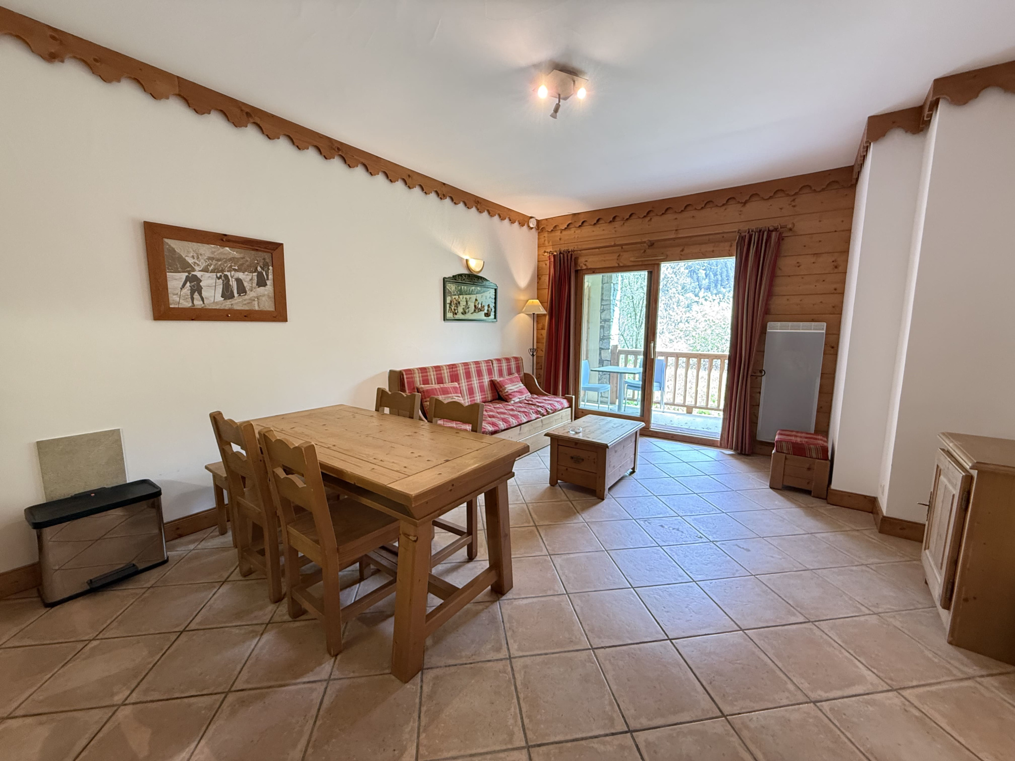 Bénéficiant d’une exposition sud-est, cet appartement lumineux s’ouvre sur une spacieuse terrasse offrant une vue panoramique et totalement dégagée sur les montagnes environnantes.